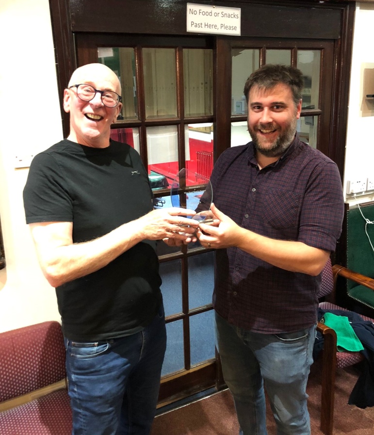 Dave Sykes (winner) receiving the trophy from Dave Tierney (President)