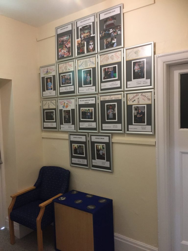 After years of playing behind “bomb bunker” doors the club is very pleased to announce the completion of the foyer re-decoration. Not only do we have a brand new set of beautiful wooden doors but our “rogues gallery” has had a facelift. This project is the latest in our long term plan to give the club a more welcoming entrance for new, and established members alike.